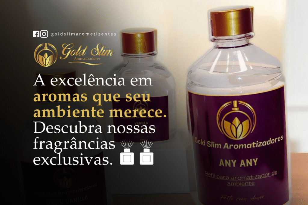 A Gold Slim Aromatizadores nasceu do desejo de transformar emoções em aromas, criando produtos que despertam memórias, acolhem e encantam. Desenvolvemos aromatizadores de ambientes, aromatizadores para carros, velas aromáticas, lembrancinhas personalizadas, fragrâncias inspiradas em grandes marcas e também identidades olfativas exclusivas para empresas e marcas que desejam marcar presença através do cheiro.